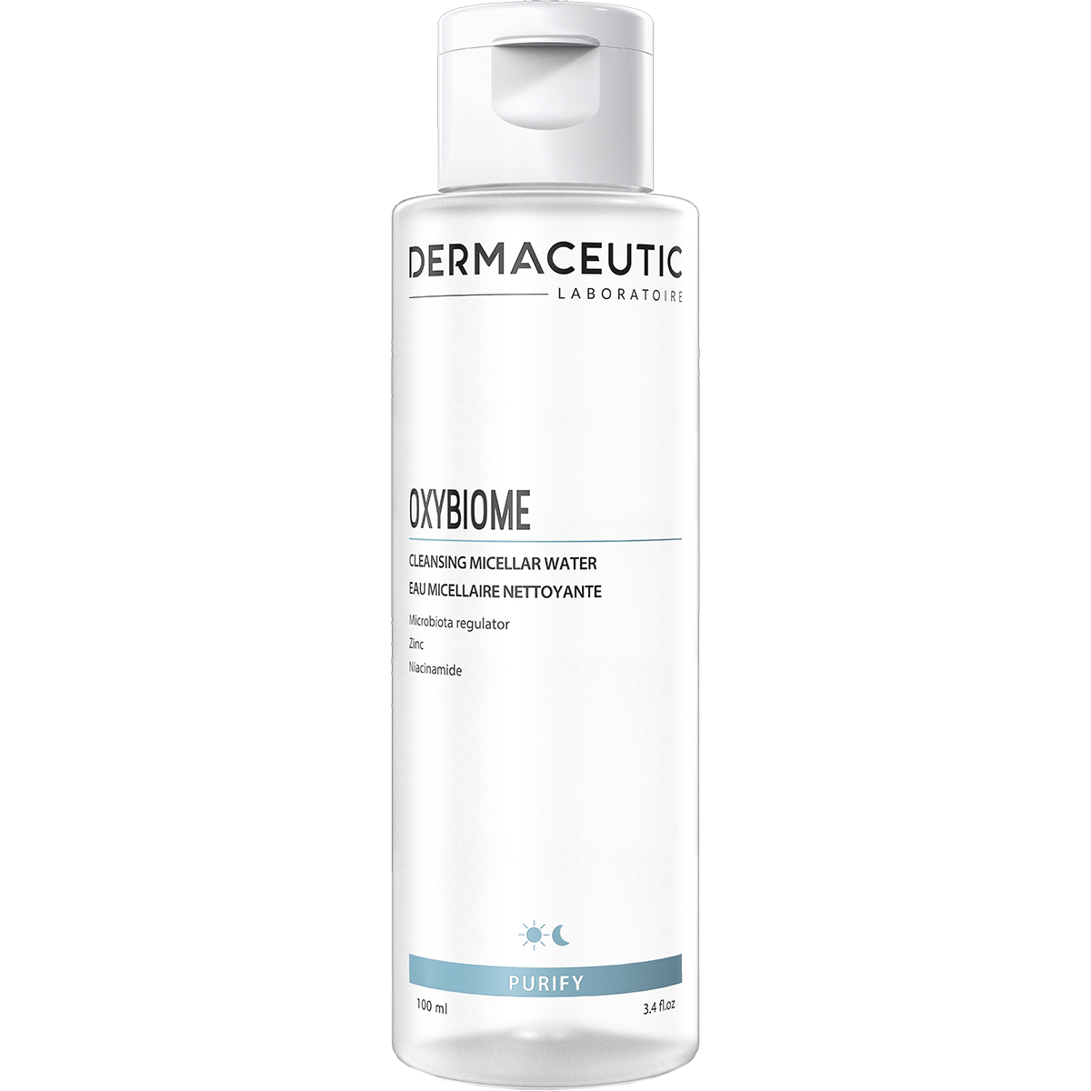 Oxybiome är ett rengörande micellärvatten som tar bort makeup i ansiktet och över ögonen. Den återställer hudens microbiota och idealisk för daglig rengöring av alla hudtyper. Oxybiome är särskilt anpassad för personer med orenheter, känslig hud samt rodnad. Produkten kan användas två gånger om dagen, och huden upplevs mjuk och ren efter användning. Den behöver inte sköljas bort.