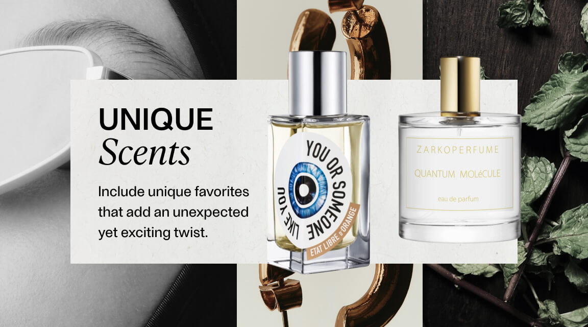 Våga experimentera och inkludera unika favoriter som ger din doftgarderob en oväntad, men spännande twist. Ett exempel på en sådan parfym är Etat Libre d’Orange You or Someone Like You som är en modern tolkning av gröna och mintiga toner. Även parfymerna NISHANE Zenne och Zarkoperfumes Quantum Molecule platsar i den här kategorin. Testa dig fram och hitta din egen unika favorit.