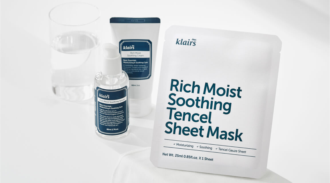 Alla Klairs produkter är testade för en känslig hy, men behöver du en extra boost rekommenderar vi produktserien Rich Moist. Börja med Rich Moist Foaming Cleanser för en effektiv och skonsam rengöring. Lyxa till det med en lugnande Rich Moist Soothing Tencel Sheet Mask. Avsluta med Rich Moist Soothing Serum följt av Rich Moist Soothing Cream, för maximal återfuktning.