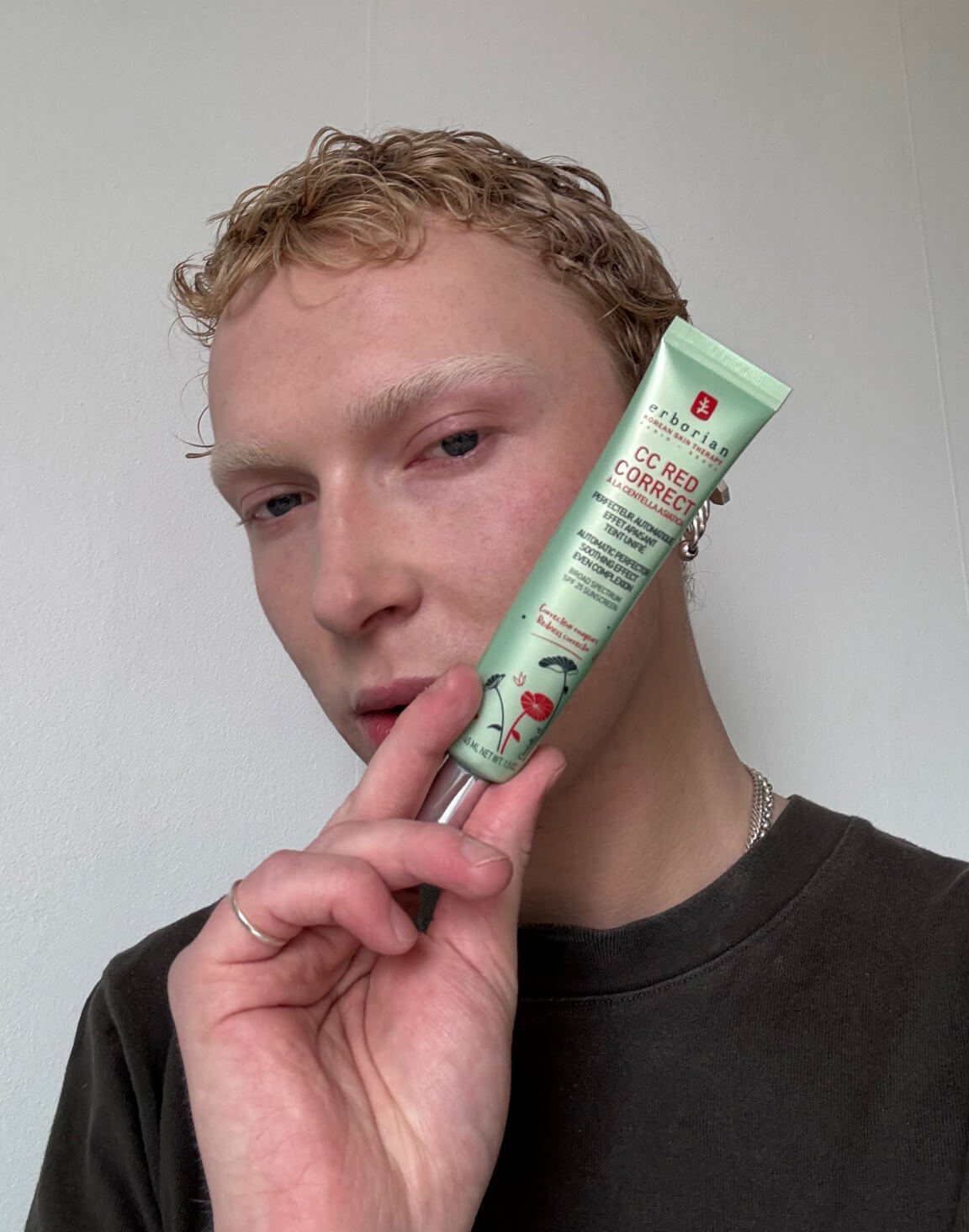 "Since I have a very fair skin tone, CC Red Correct from Erborian is perfect for me when I want to tone down my redness. It also gives a natural finish, so I don't look like I'm wearing makeup. Birch Juice Moisturizing Sunscreen SPF50+ PA++++ from Round Lab is also an obvious choice – it hydrates my very dry skin and works perfectly under makeup while providing sun protection."@frankadamhagman betalt samarbete med @Bangerhead ♬ original sound - Frank-Adam Hagman