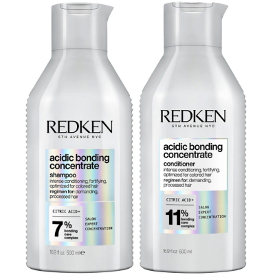 Bekämpa ett års synliga skador i en enskild användning* med de fyra stegen i Redken Acidic Bonding Concentrate-regimen. Professionell formula! Redken Acidic Bonding Concentrate Shampoo är Redkens mest koncentrerade all-in-one-formula för en stärkande reparation av alla typer av skadat hår. Detta exklusiva schampo ger ultimativ styrka, reparation och skyddar hårfärgen från att avta. Med dess 7 % Bonding Care Complex och alfahydroxysyra, citronsyra, stärker Acidic Bonding Concentrate Shampoo svaga bindningar och förbättrar hårets motståndskraft. Detta pH-balanserande schampo är speciellt framtaget med ett lågt pH-värde, för att motverka de negativa effekter från hårfärgning, värmestyling och till och med vatten. Resultatet? Ett hår som ser och känns välmående!