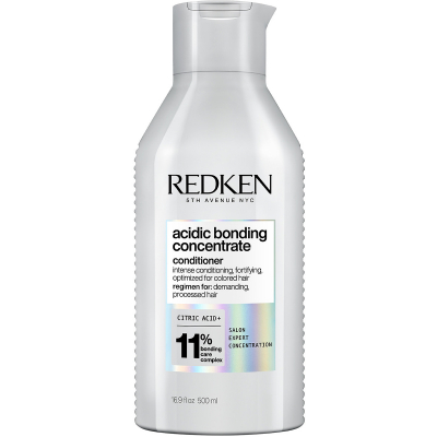 Bekämpa ett års synliga skador i en enskild användning* med de fyra stegen i Redken Acidic Bonding Concentrate-regimen. Professionell formula! Redken Acidic Bonding Concentrate Conditioner är Redkens mest koncentrerade all-in-one-formula för en stärkande reparation av alla typer av skadat hår. Detta ytterst rika och närande balsam reparerar håret från fjällskiktet till cortex, ger en stärkande reparation, intensiv vård och skyddar hårfärgen från att avta. Med dess 11 % Bonding Care Complex och alfahydroxysyra, citronsyra, stärker Acidic Bonding Concentrate Shampoo svaga bindningar och förbättrar hårets motståndskraft. Detta pH-balanserande balsam är speciellt framtaget med ett lågt pH-värde, för att motverka de negativa effekter från hårfärgning, värmestyling och till och med vatten. Resultatet? Ett hår som ser och känns välmående!
